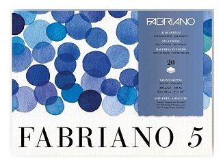 Бумага для акварели Fabriano Блок для акварели FABRIANO "5", 300г/м2, 26x36см, Торшон, склейка 20 листов информация:
