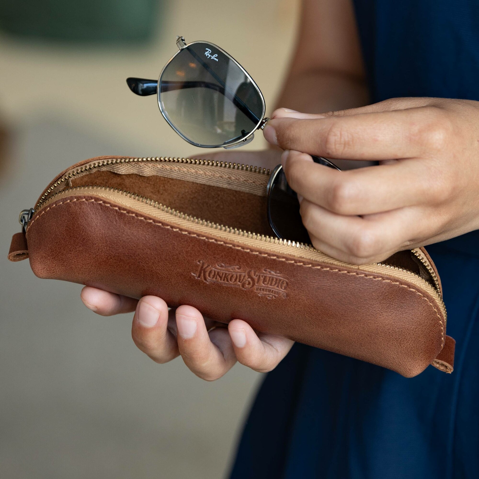 10 цен на Пенал для карандашей и очков из натуральной кожи (Коричневый)
