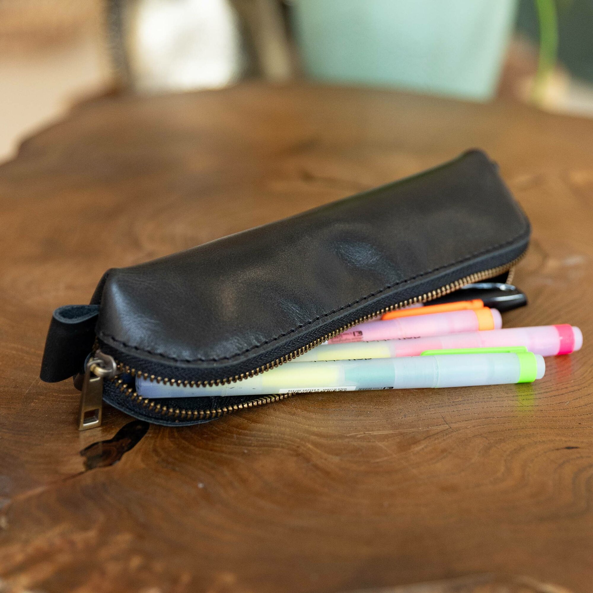 10 цен на Пенал для карандашей и очков из натуральной кожи (Чёрный)