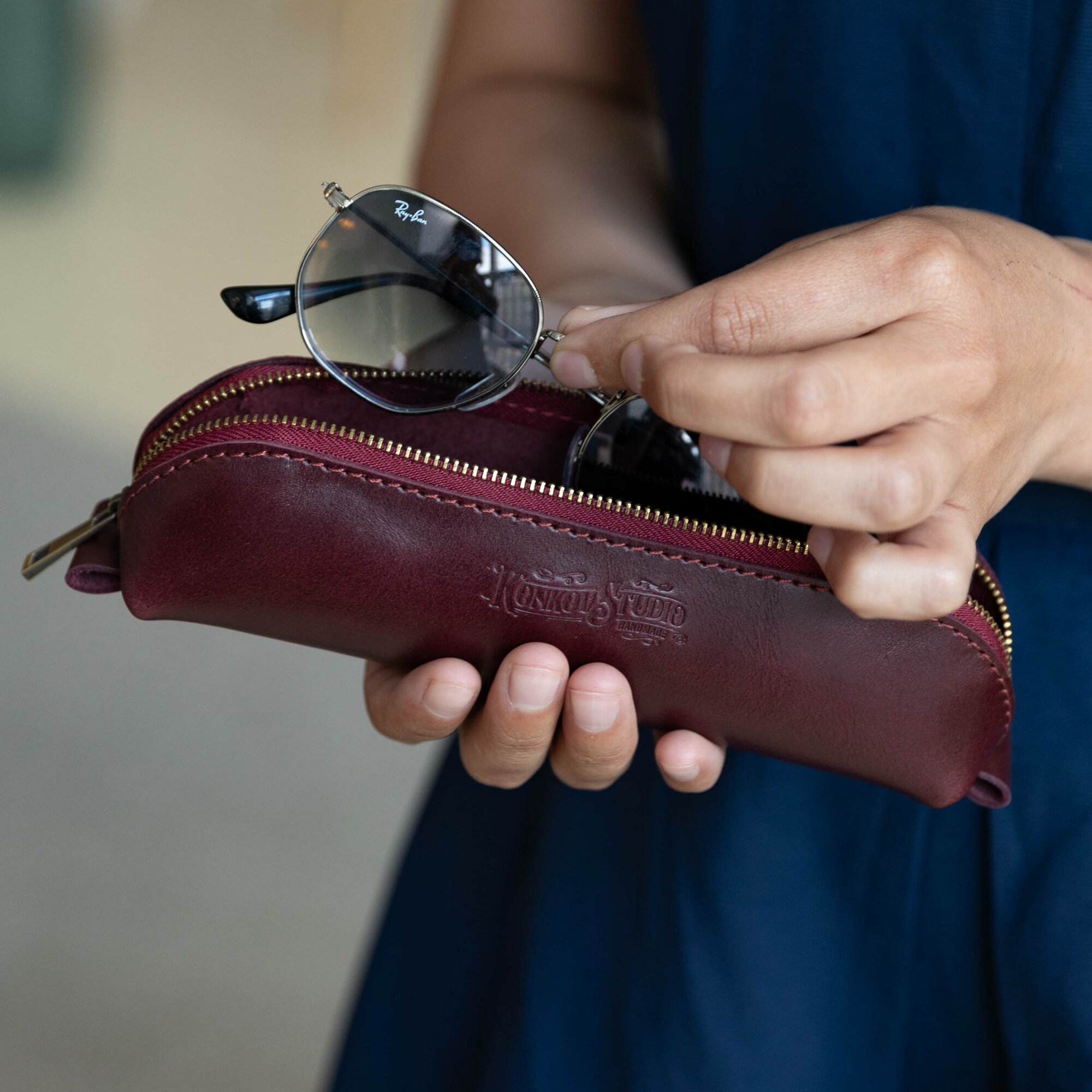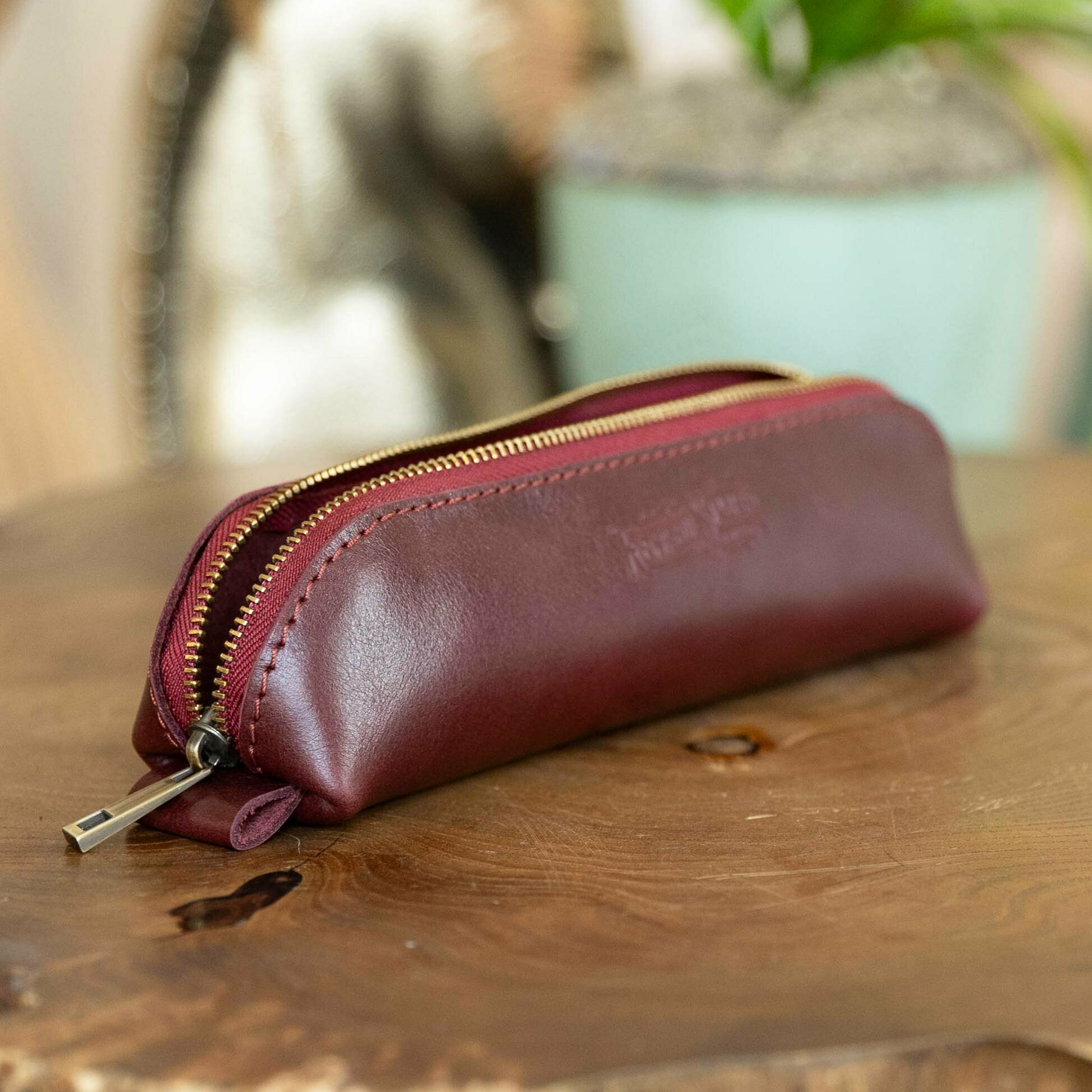 10 цен на Пенал для карандашей и очков из натуральной кожи (Бордовый)