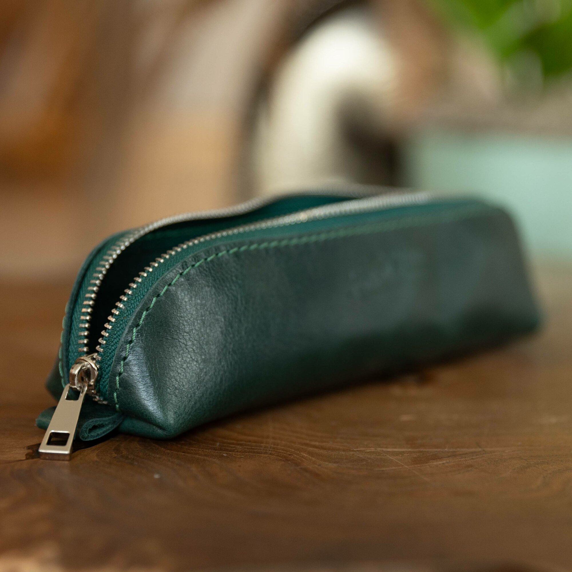 Пенал для карандашей и очков из натуральной кожи (Зелёный) информация: