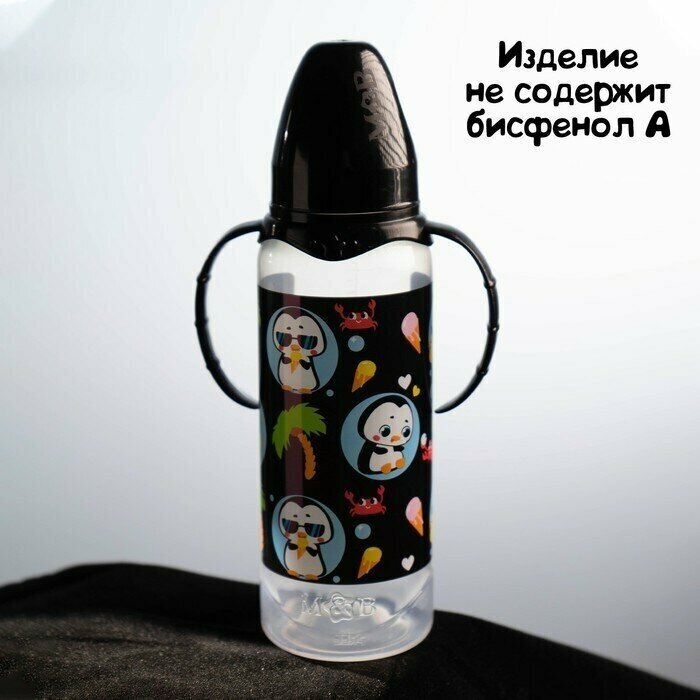 Бутылочка для кормления тренд. Пингвин 250 мл цилиндр, с ручками информация: