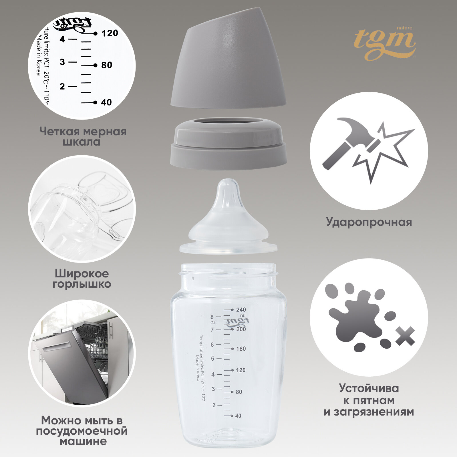 Отзывы на Бутылочка для кормления TGM Rice Grain Tritan 240 мл warm grey