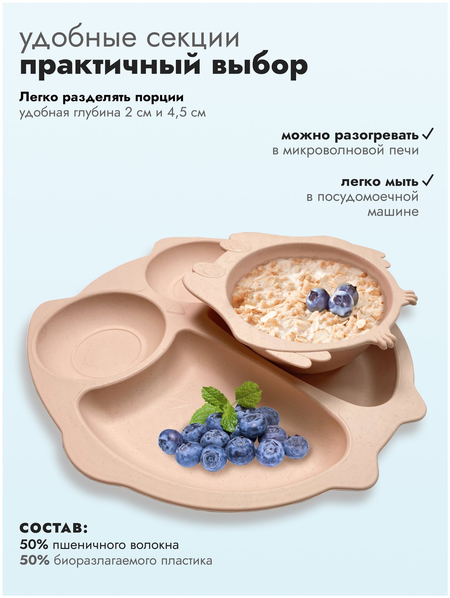 | Особенности | использование в СВЧ / можно мыть в посудомоечной машине / тарелка с секциями |