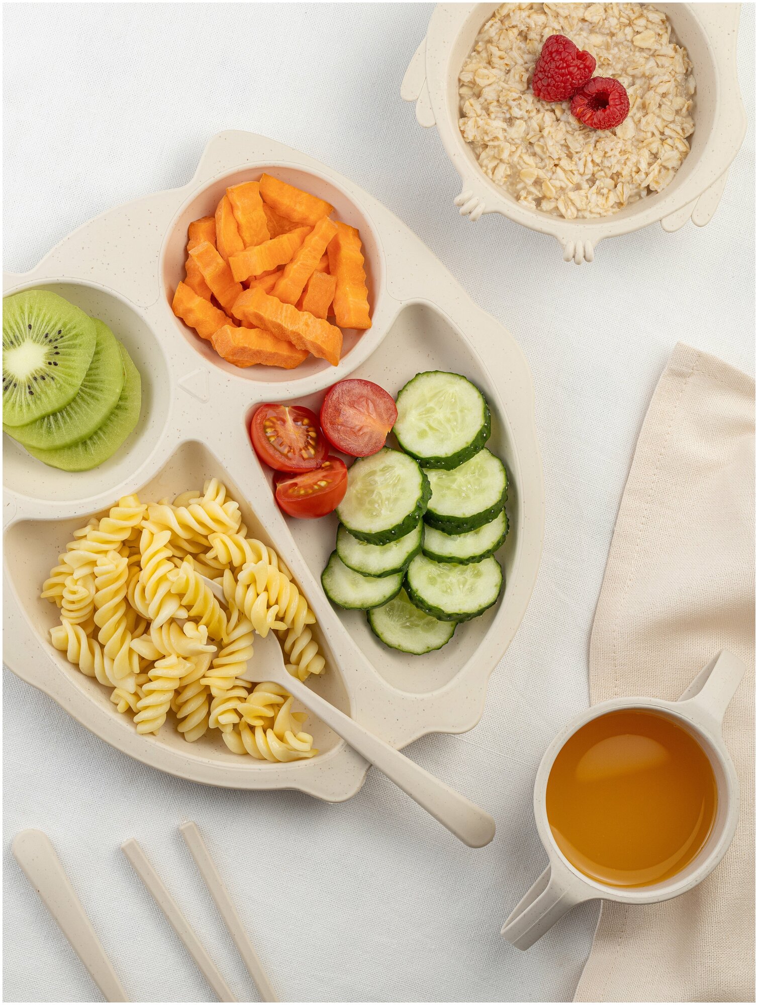 Отзывы на Детская посуда Набор Совёнок детская тарелка, ложка, вилка, кружка, бежевый