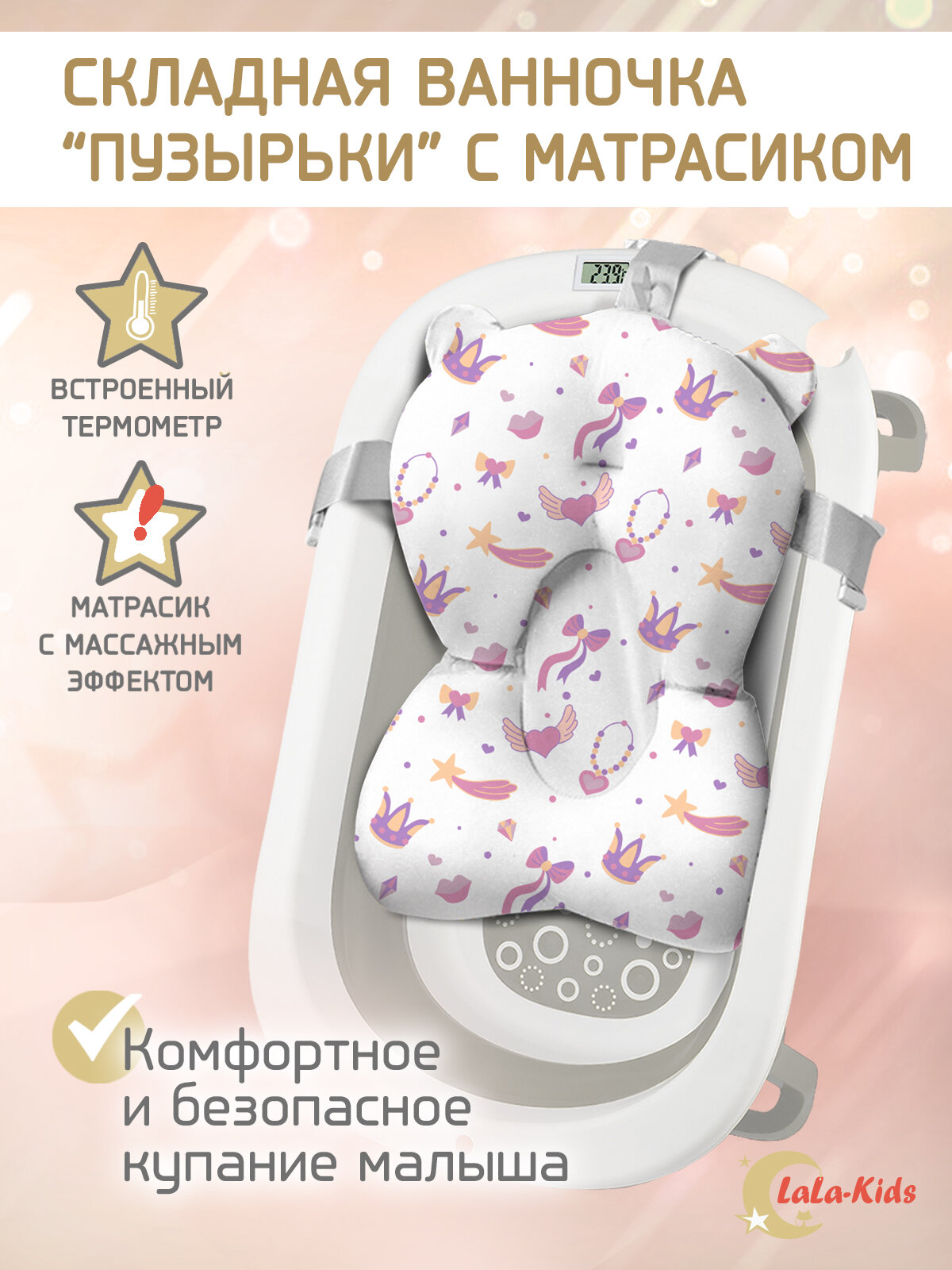 10 цен на Ванночка складная с термометром для купания новорожденных LaLa-Kids, матрасик-горка для купания Принцессы