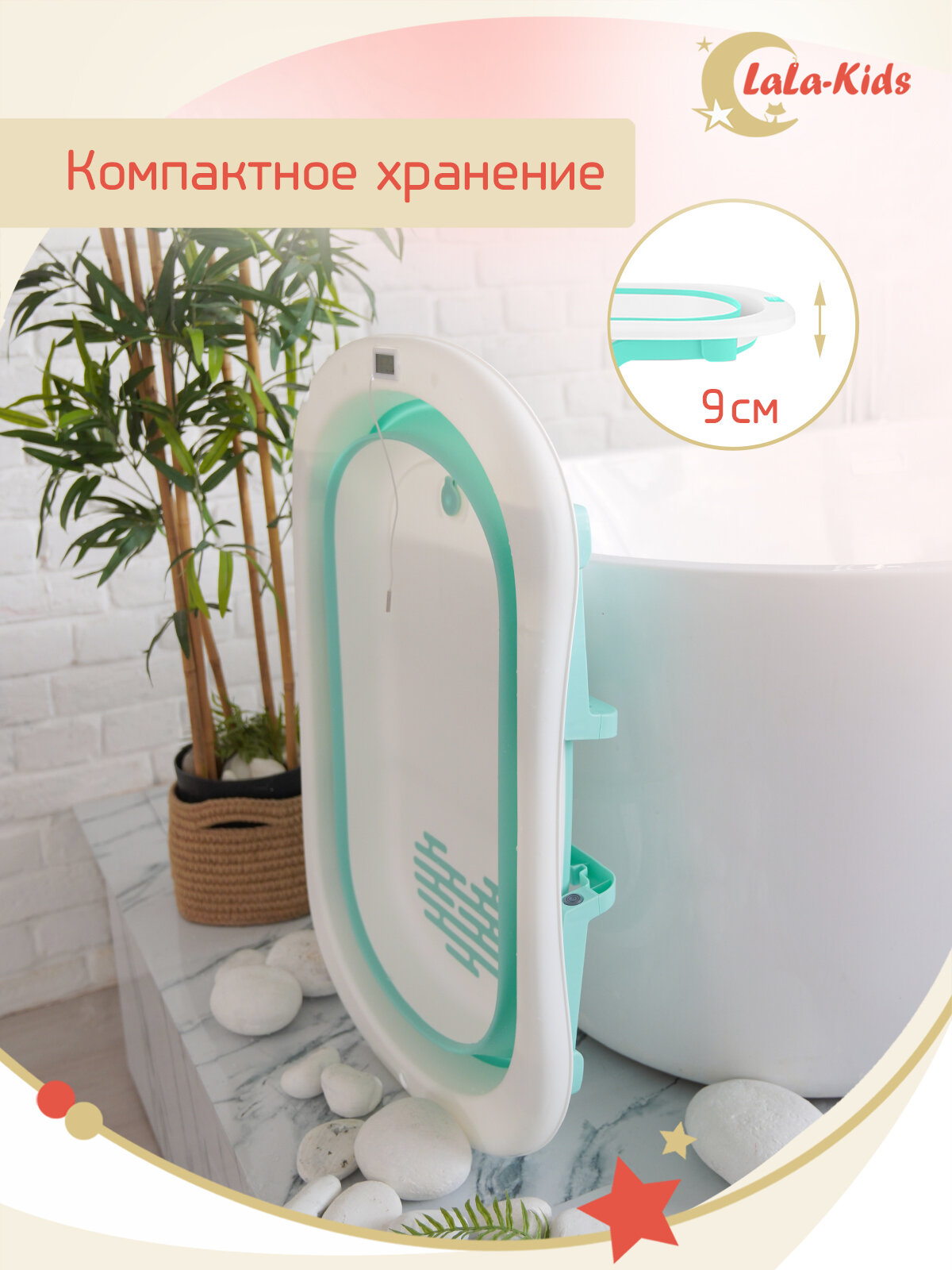 10 цен на Ванночка для купания новорожденных складная с термометром и матрасом LaLa-Kids мятная