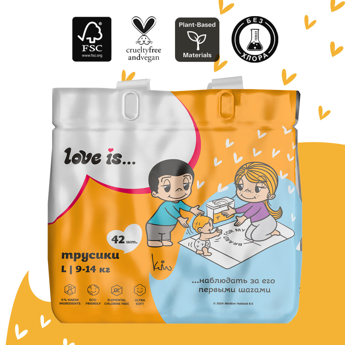 Подгузники-трусики BRAND FOR MY SON x LOVE IS, 4 L от 9 - 14 кг, 42 шт в упаковке информация: