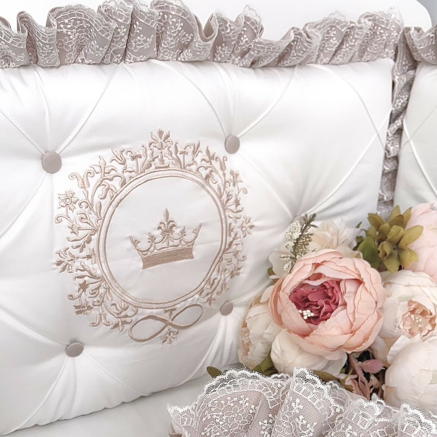 Бортики в детскую кроватку для новорожденного "Безмятежность" на кроватку 120*60 на 3 стороны, розовый, сатин, KrisFi