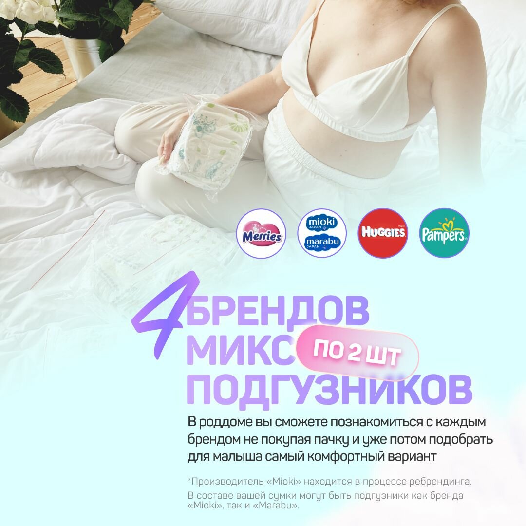 Сумка в роддом готовая для мамы и малыша с наполнением, 13 предметов + 1 фиолетовая сумка , комплектация "Мини" 3 039 ₽