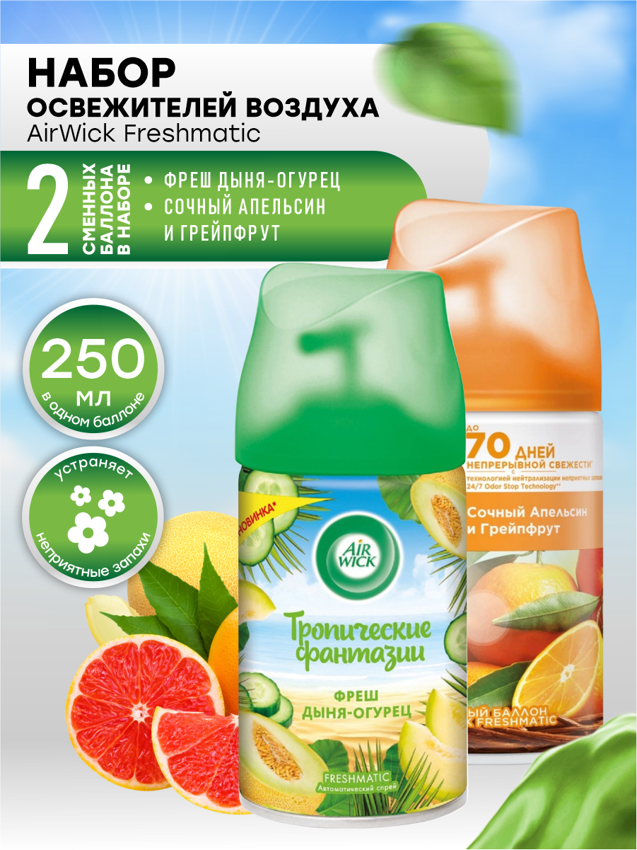 Набор Сменный баллон к автоматич. освежителю воздуха AirWick Апельсин и Грейпфрут+Фреш дыня-огурец информация: