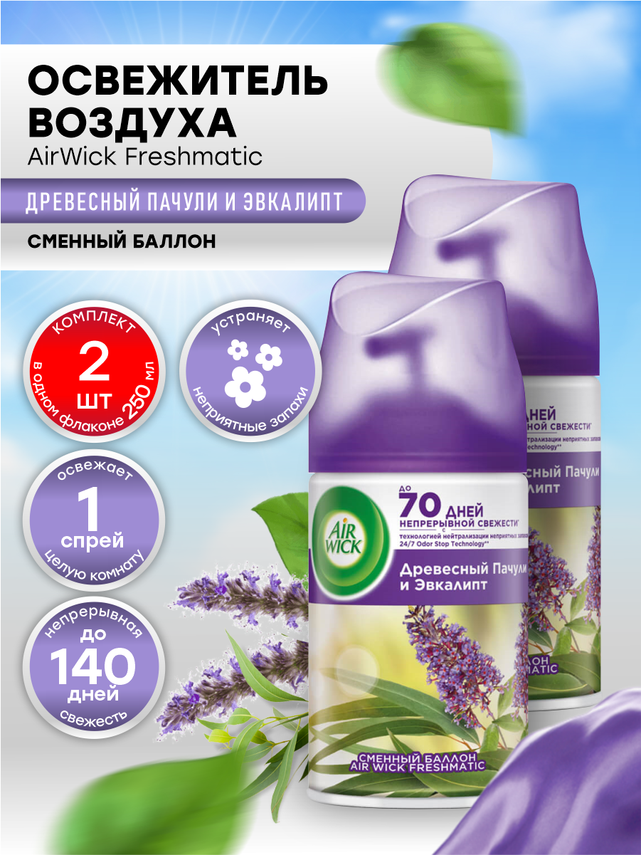 Сменный баллон к автоматическому освежителю AirWick Древесный Пачули Эвкалипт 250мл.х 2 шт информация: