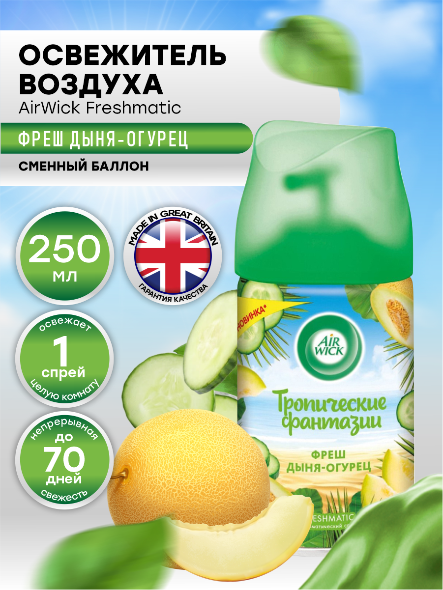 AIRWICK Сменный баллон к автоматическому освежителю воздуха Фреш дыня-огурец 250 мл. информация: