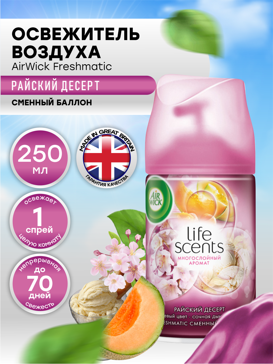 10 цен на AIRWICK Life Scents Сменный баллон к освежителю воздуха Многослойный Аромат Райский десерт 250 мл.