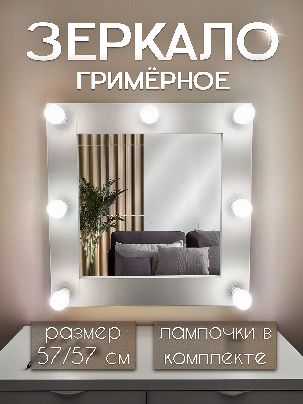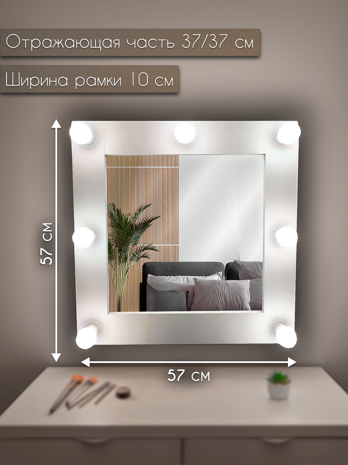 Гримерное зеркало BeautyUp 57/57 с комплектом лампочек, цвет "Белый" информация: