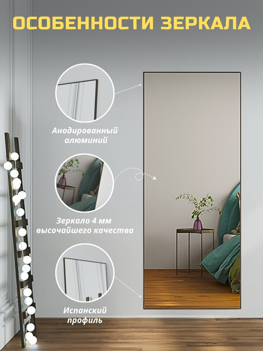Зеркало напольное в полный рост 50х170см цвет темно-коричневый, зеркало в алюминиевой раме на пол или на стену, большое зеркало 11 500 ₽