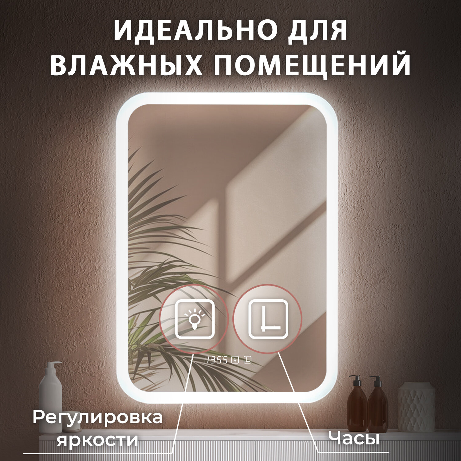 | Особенности | подсветка, регулировка яркости подсветки, с часами, сенсорный выключатель подсветки |