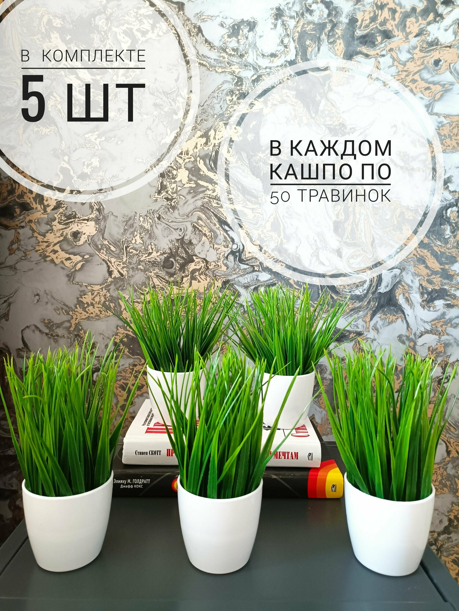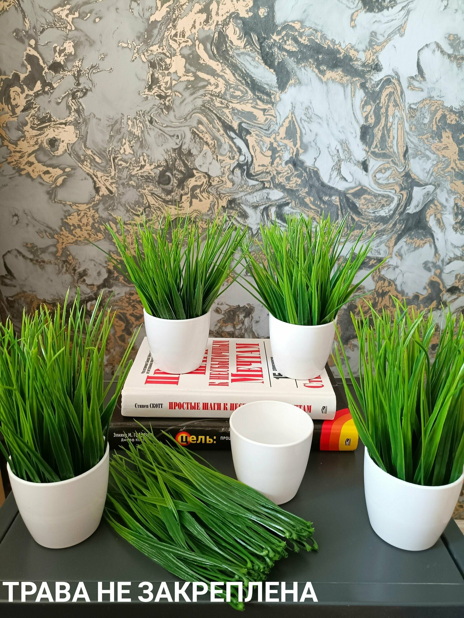 Отзывы на Трава в кашпо, набор 5 шт. Высота 16 см, композиция искусственная осока в кашпо, зелень в горшке для декора дома, дачи, кафе, кофейни