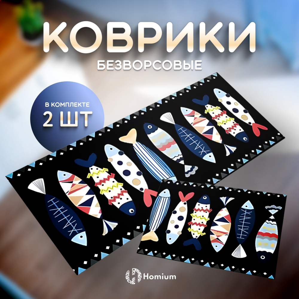 Коврик для кухни, прикроватный коврик, ковер Homium, мягкий, набор 2 коврика, Рыбки, 44*58/45*158см информация: