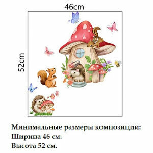Интерьерные наклейки 46х52 см. "Сказочный гриб с животными" детские для стен, мебели из ПВХ. информация: