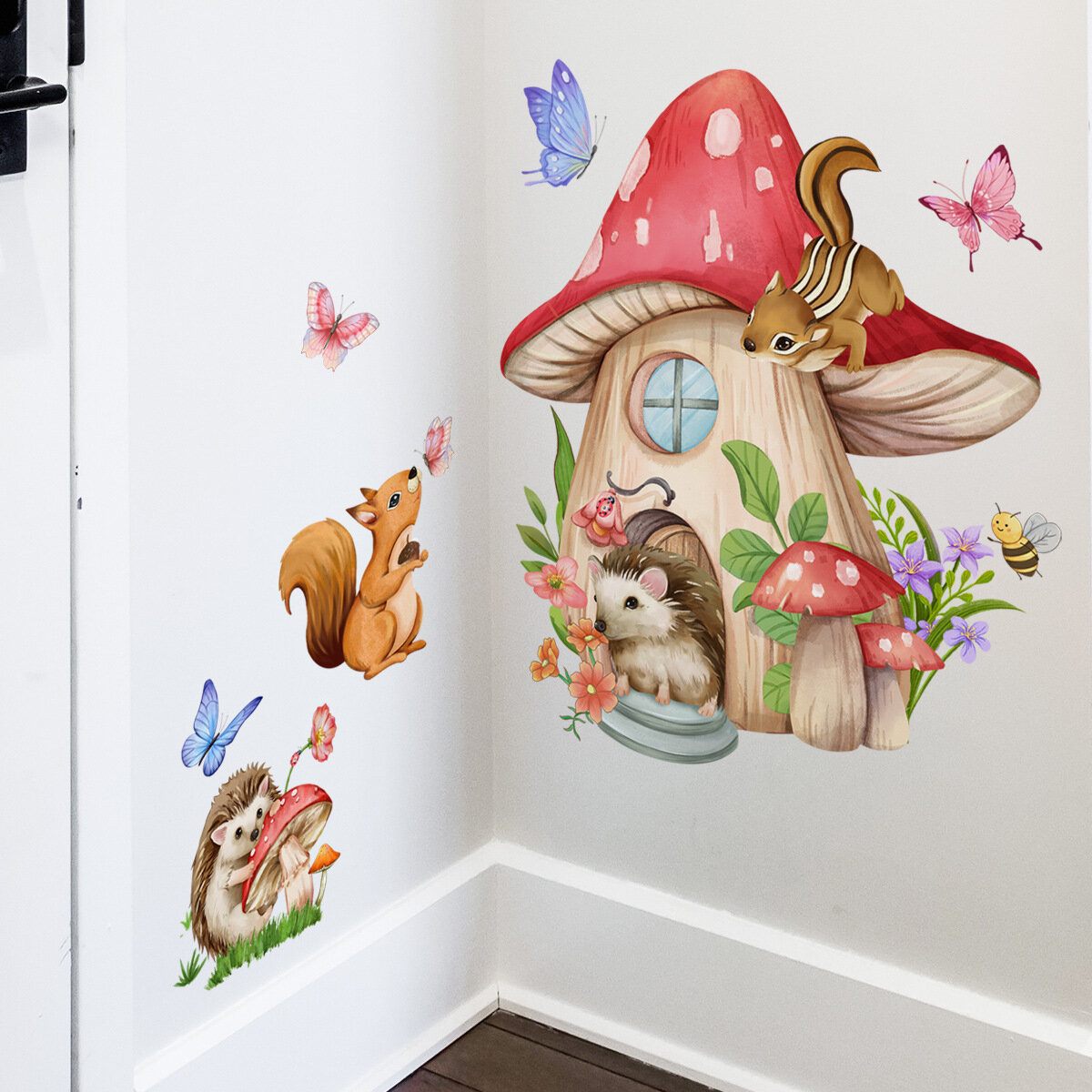 10 цен на Интерьерные наклейки 46х52 см. "Сказочный гриб с животными" детские для стен, мебели из ПВХ.