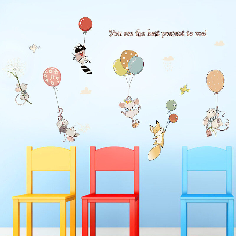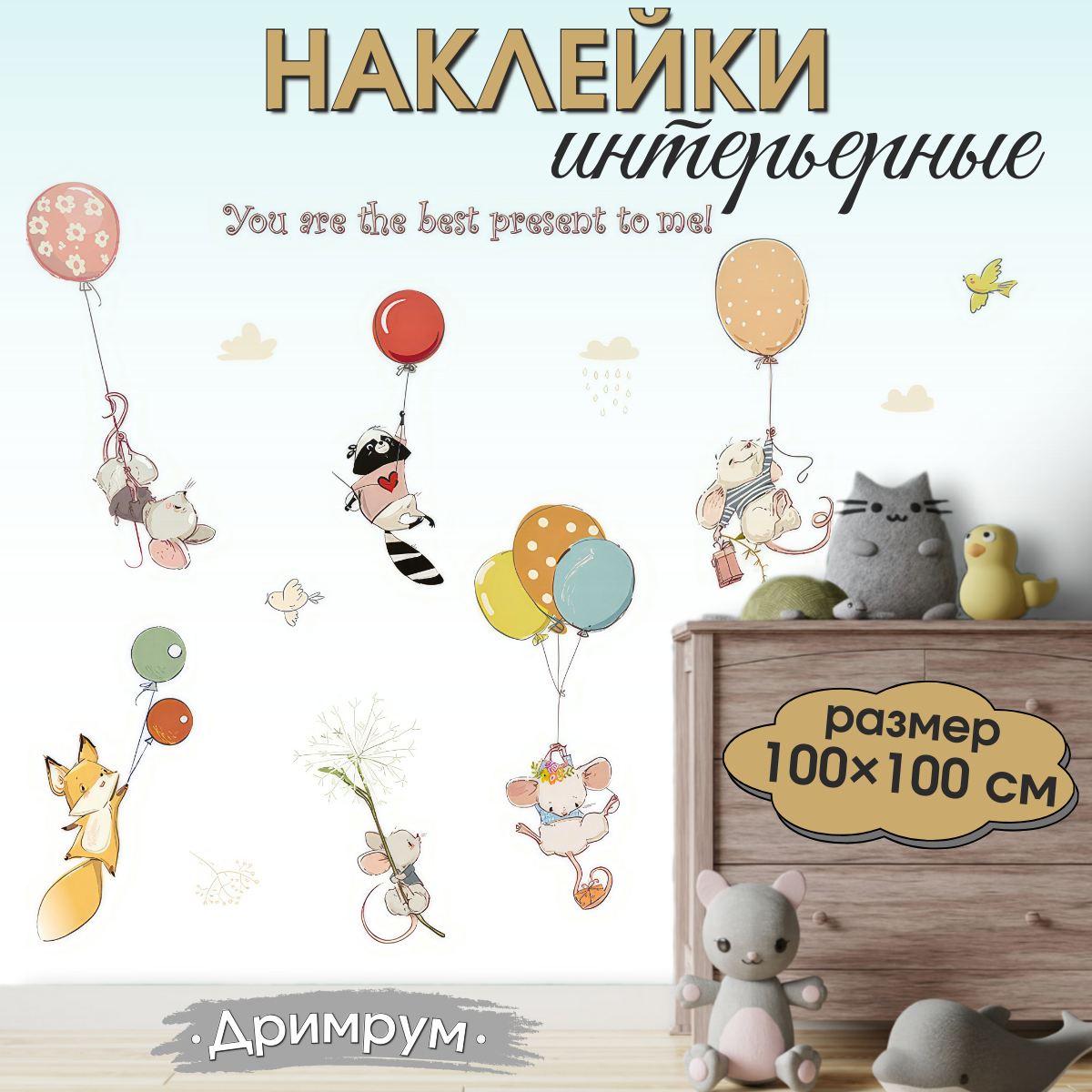Наклейка на стену для интерьера для детей Звери на шарах информация: