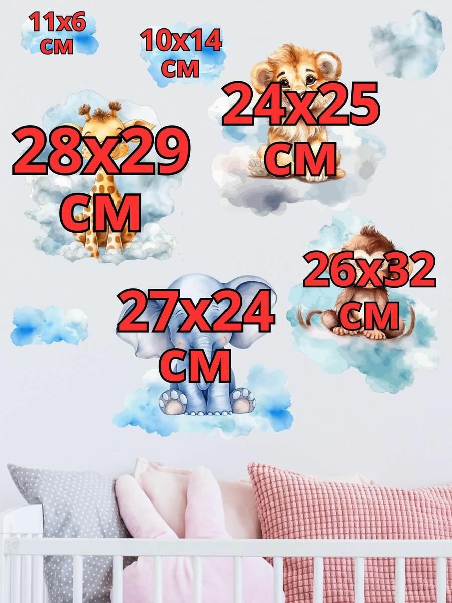 10 цен на Интерьерные наклейки на стену для декора и интерьера дома/ stiker / зверюшки на облачках