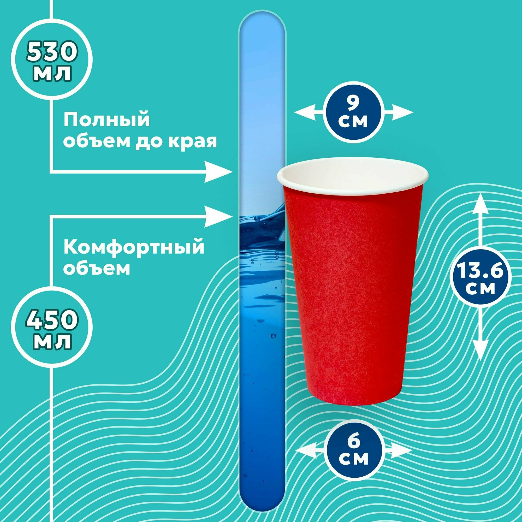 Набор одноразовых стаканов гриникс, объем 450 мл 40 шт. красные, бумажные, однослойные, для кофе, чая, холодных и горячих напитков информация:
