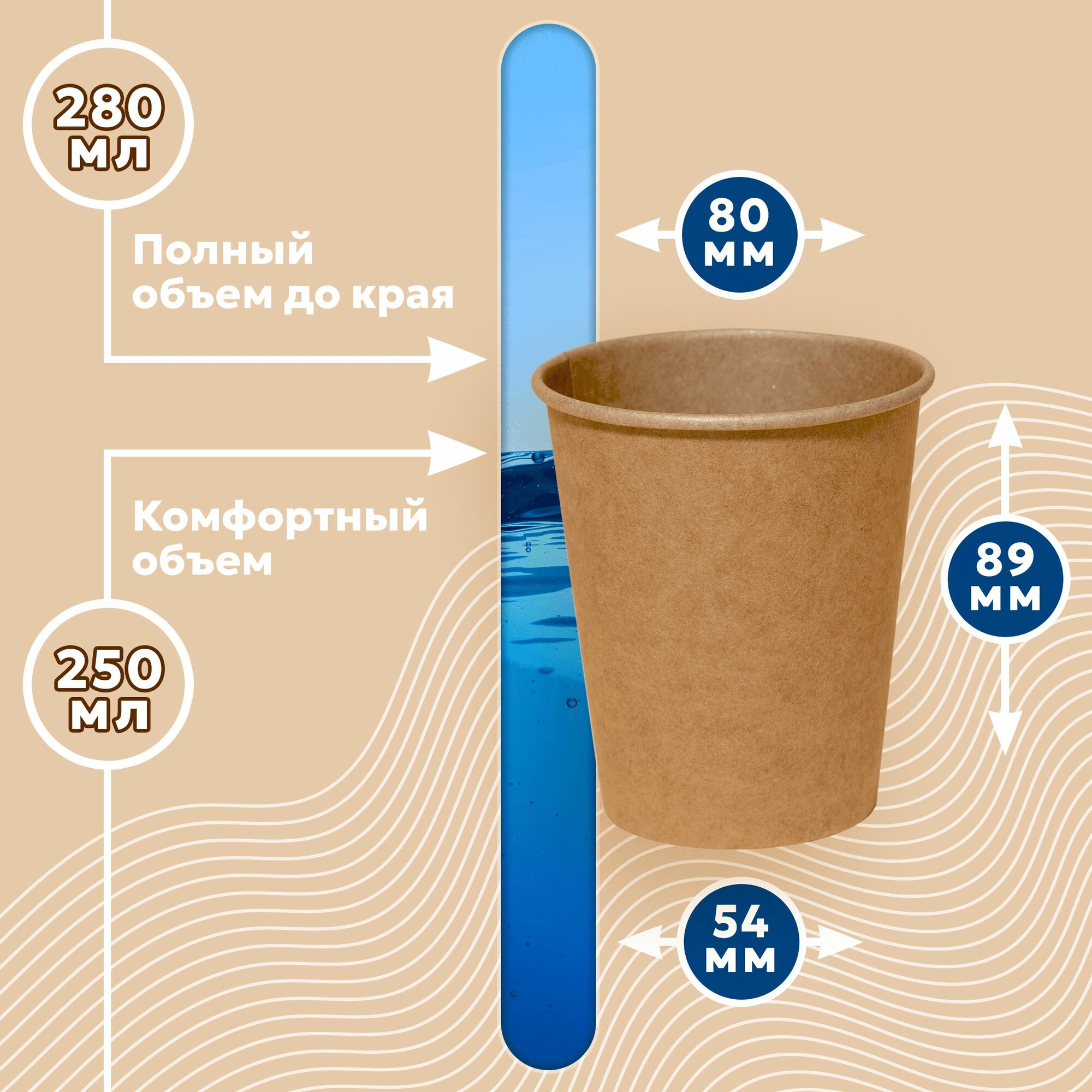 Набор одноразовых стаканов гриникс, объем 250 мл 50 шт. крафт, бумажные, однослойные, для кофе, чая, холодных и горячих напитков информация: