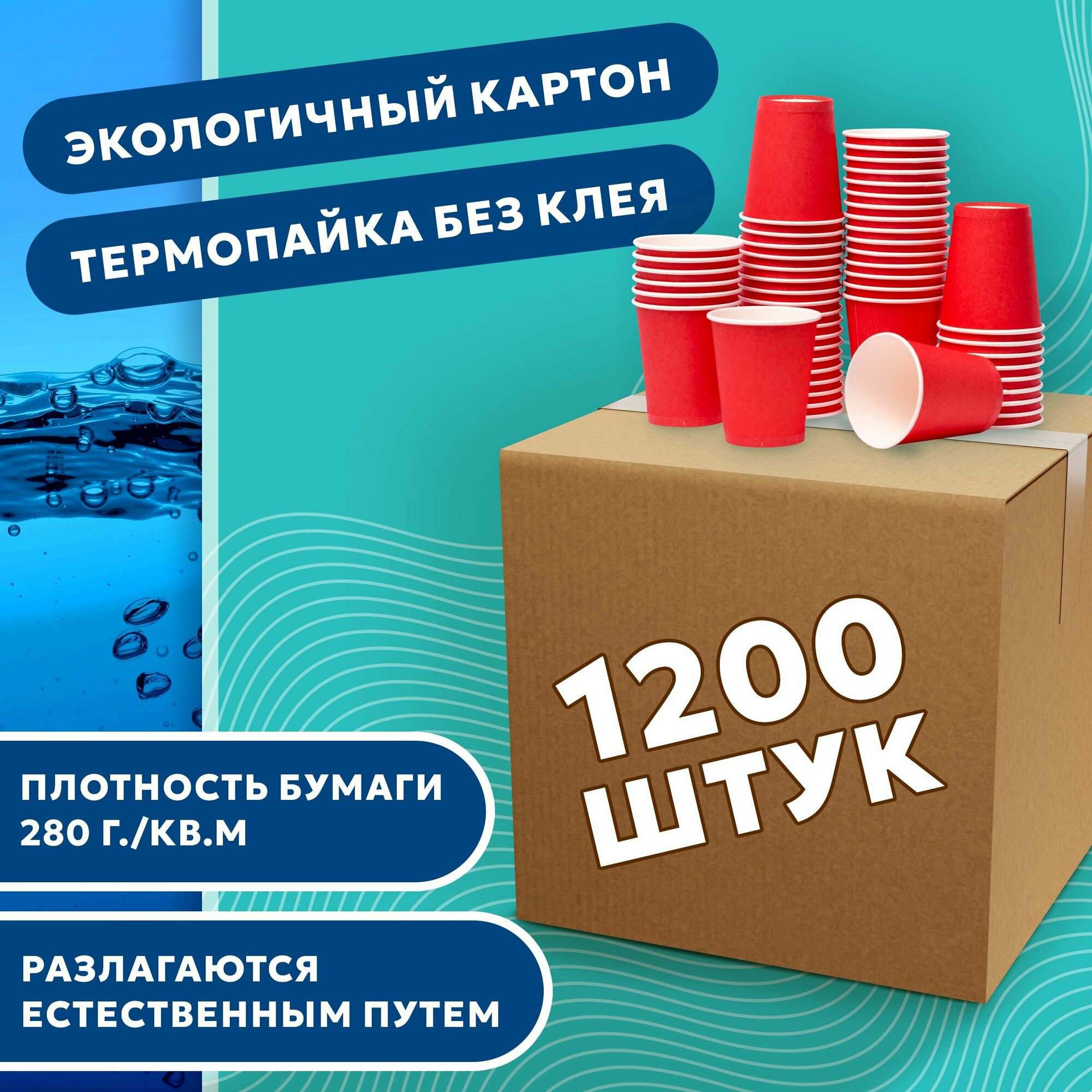 Набор одноразовых стаканов гриникс, объем 250 мл 1200 шт. красные, бумажные, однослойные, для кофе, чая, холодных и горячих напитков информация: