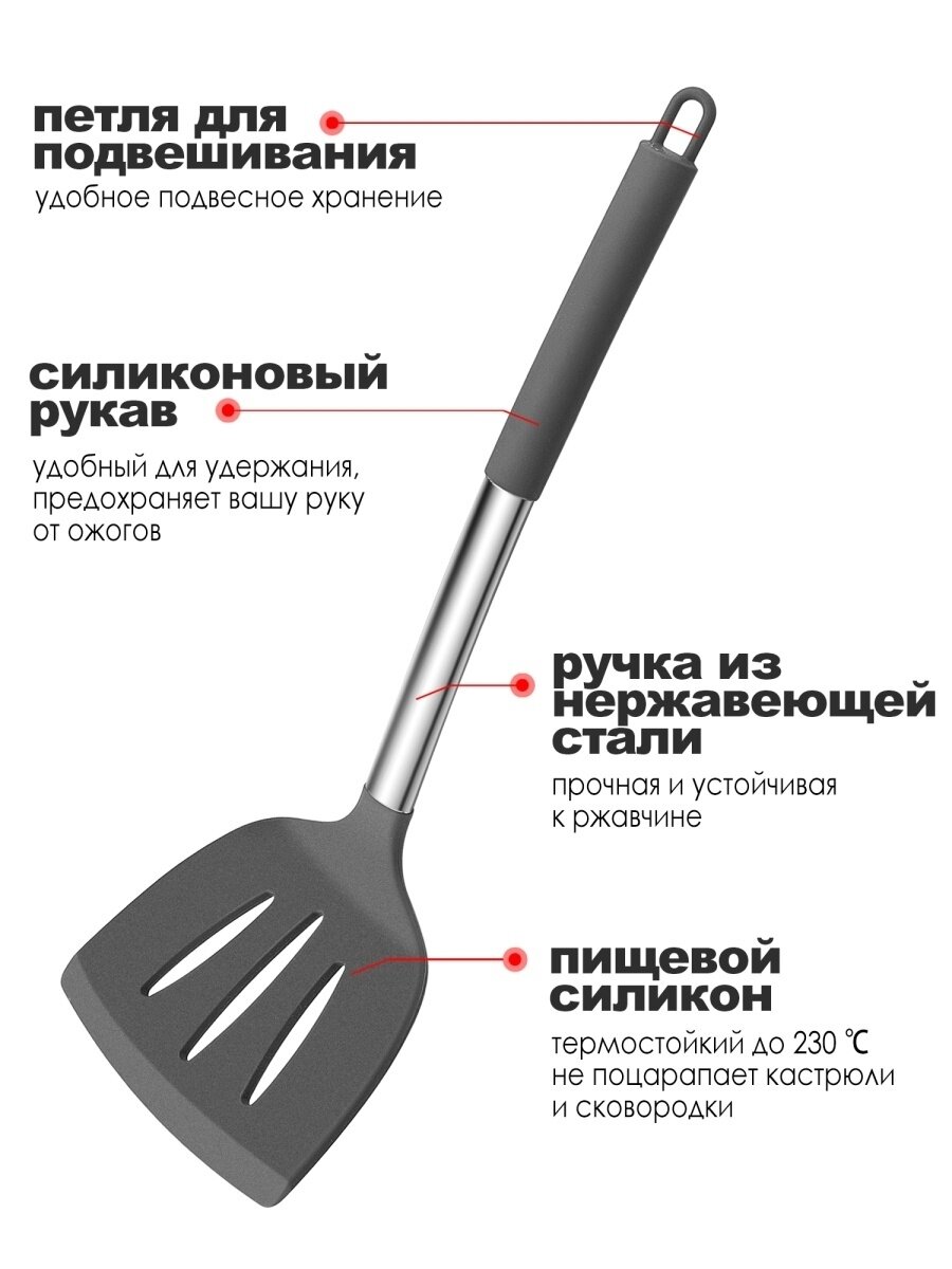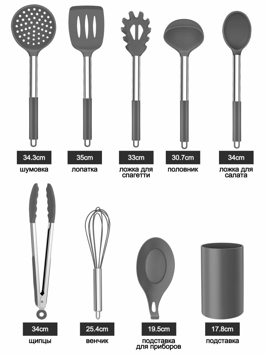 | Состав набора | венчик / ложка для спагетти / лопатка / половник / шумовка / щипцы |