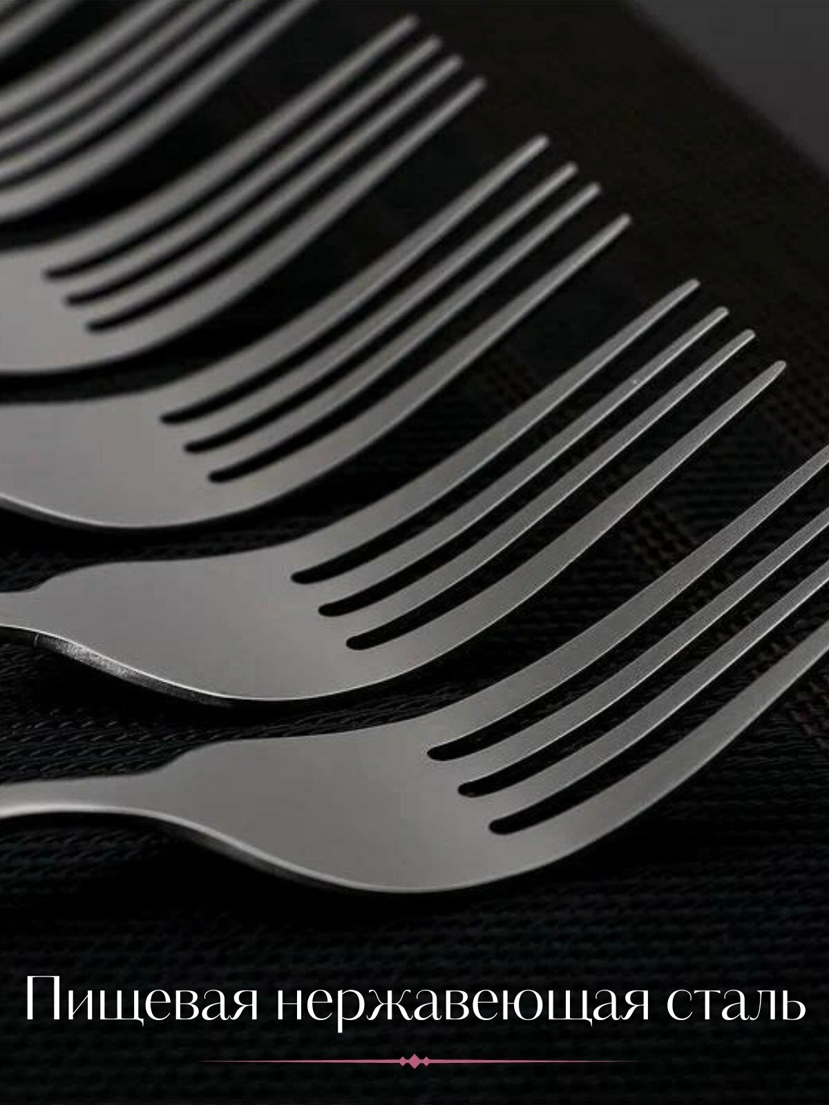 Вилка столовая большая из нержавеющей стали с титановым покрытием черного матового цвета