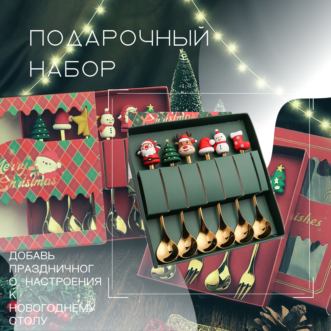 Новогодний подарочный набор десертных ложек 2024, 16 см, 6 шт информация: