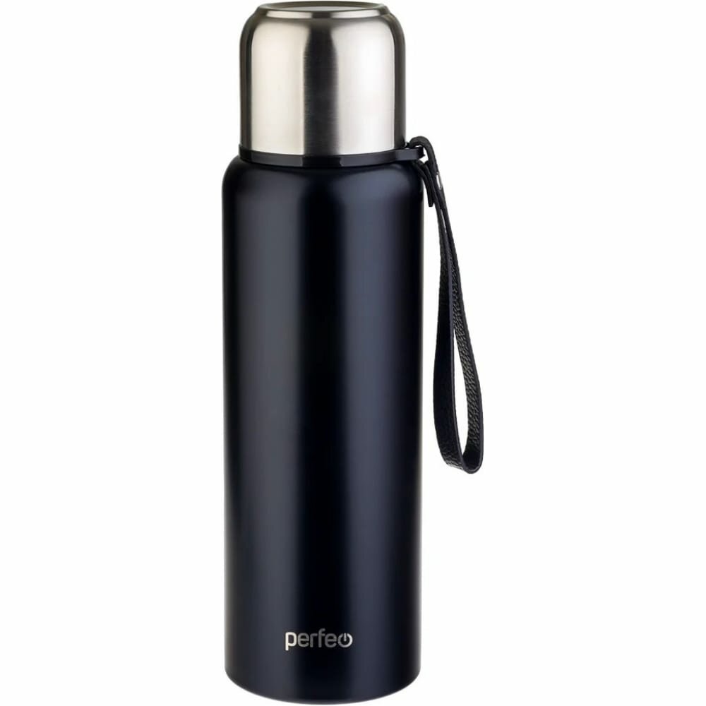 Термос PERFEO для напитков с глухой пробкой, ситечком, ремешком, объем 1 л., черный (PF_C3707)
