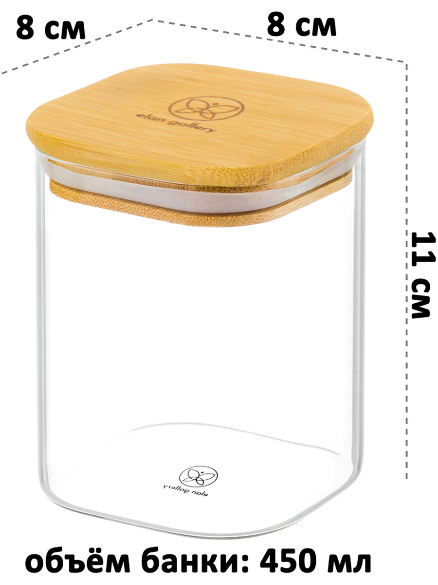 Набор 2 банок для хранения 450 мл 8*8*11 см "Crystal glass" + бамбук. крыш. с силикон. проклад, стекло информация: