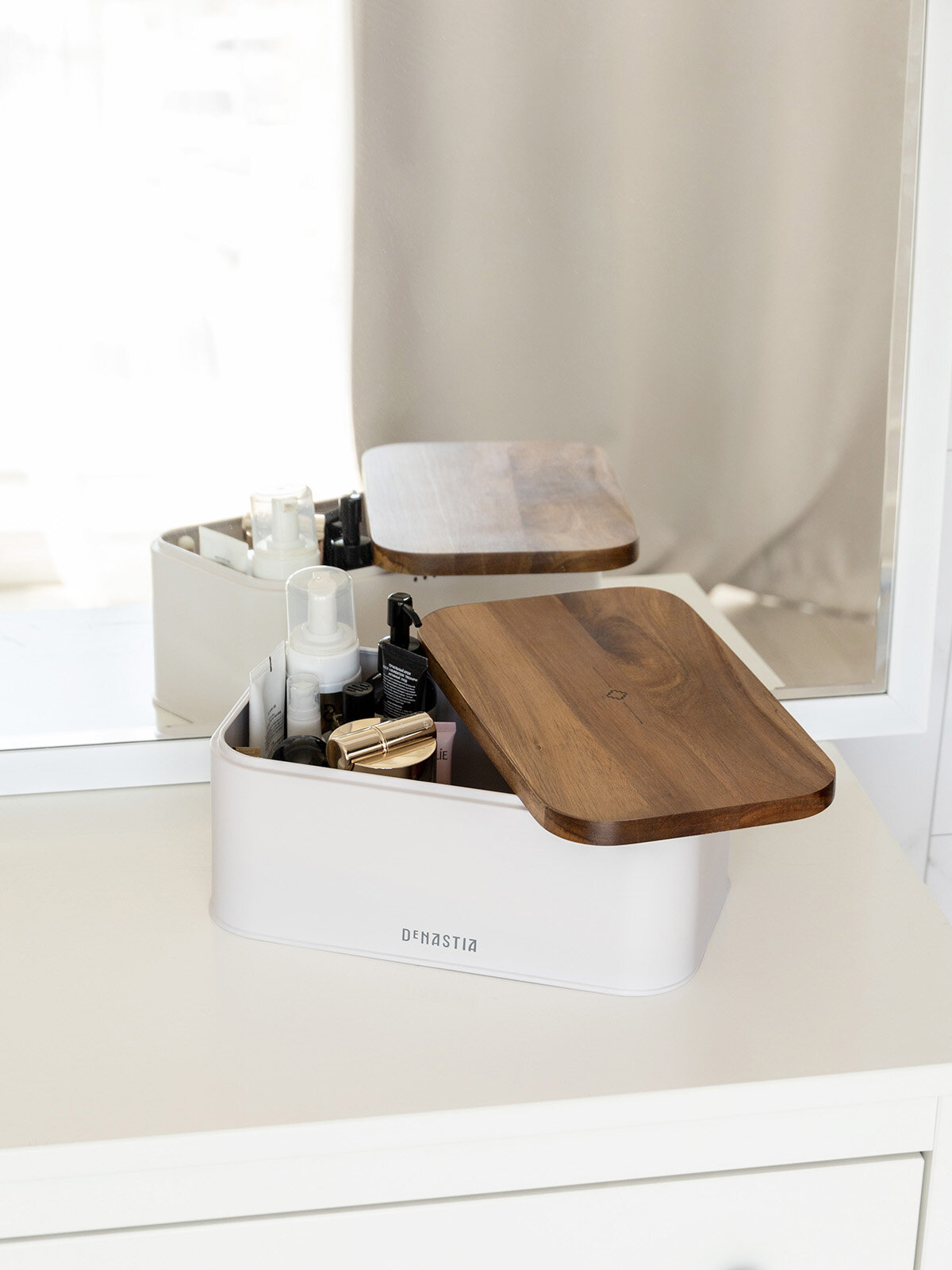 Хлебница DeNASTIA с деревянной крышкой 30,5x18,5x12,5см, сталь, цвет белый информация: