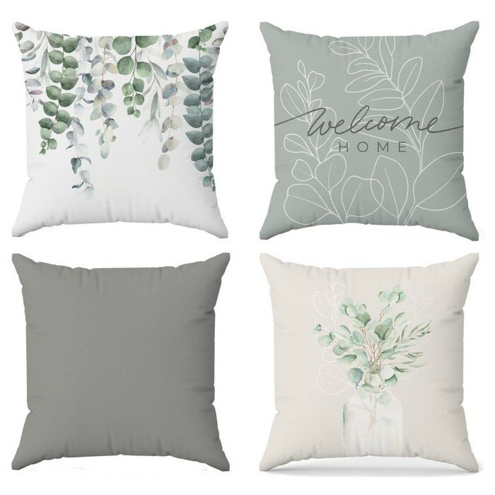 Чехол на подушку "Eucalyptus", 4 шт, 40*40 см, велюр Этель 9788796 . информация: