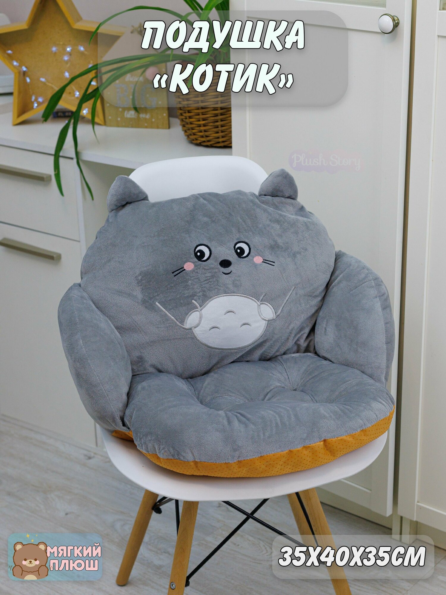 Подушка сидушка на стул Котик Кошка Котенок серая информация: