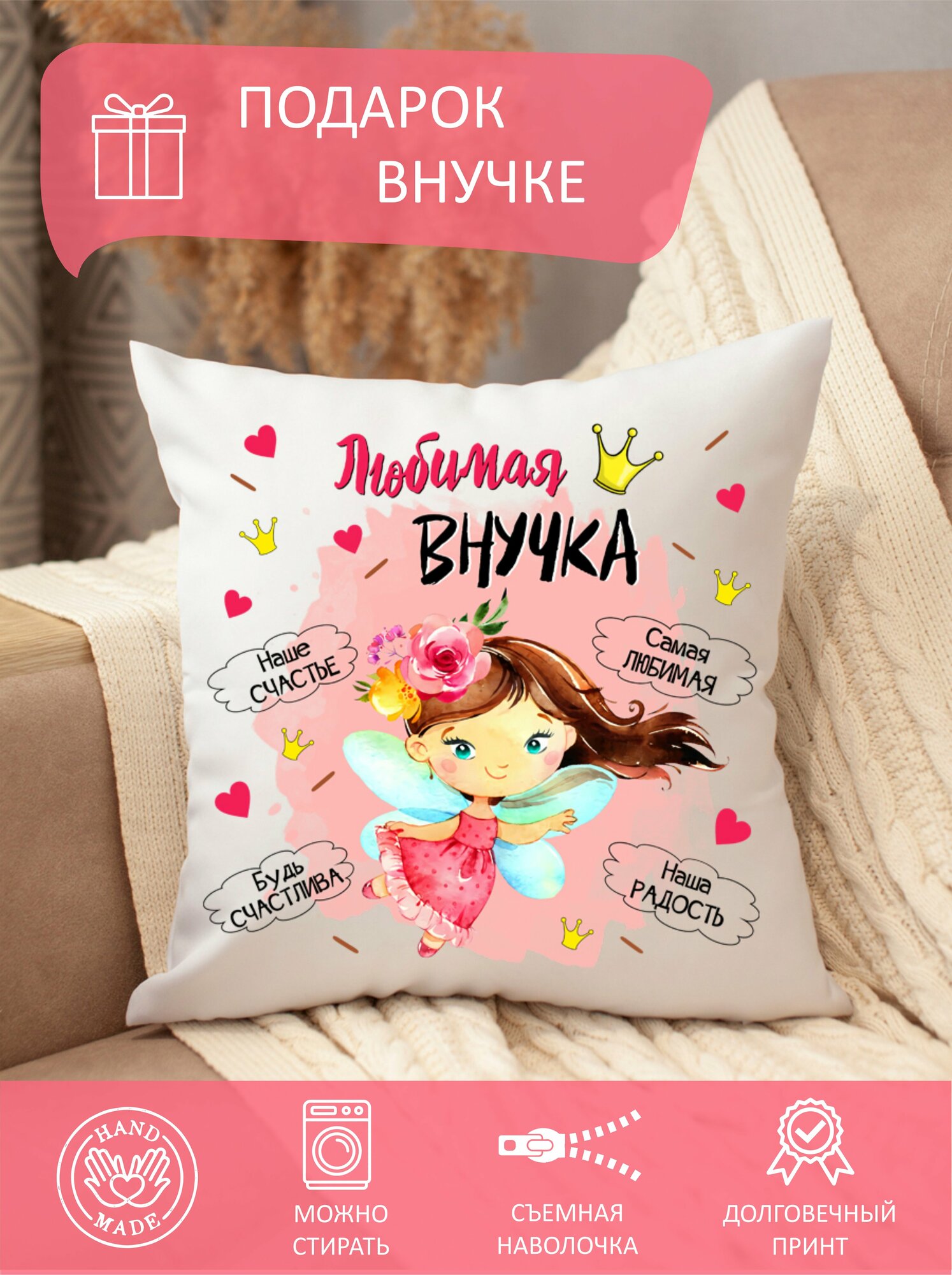 Подушка внучке с принтом декоративная диванная информация: