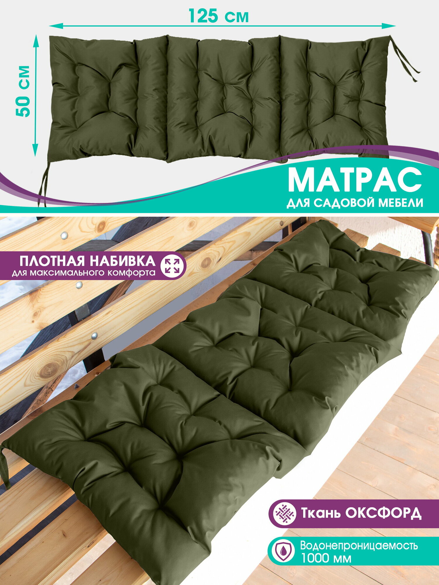 Матрас для качелей и садовой мебели Bio-Line 50x125 см с завязками для дома и дачи с водоотталкивающей пропиткой 125х50см олива информация: