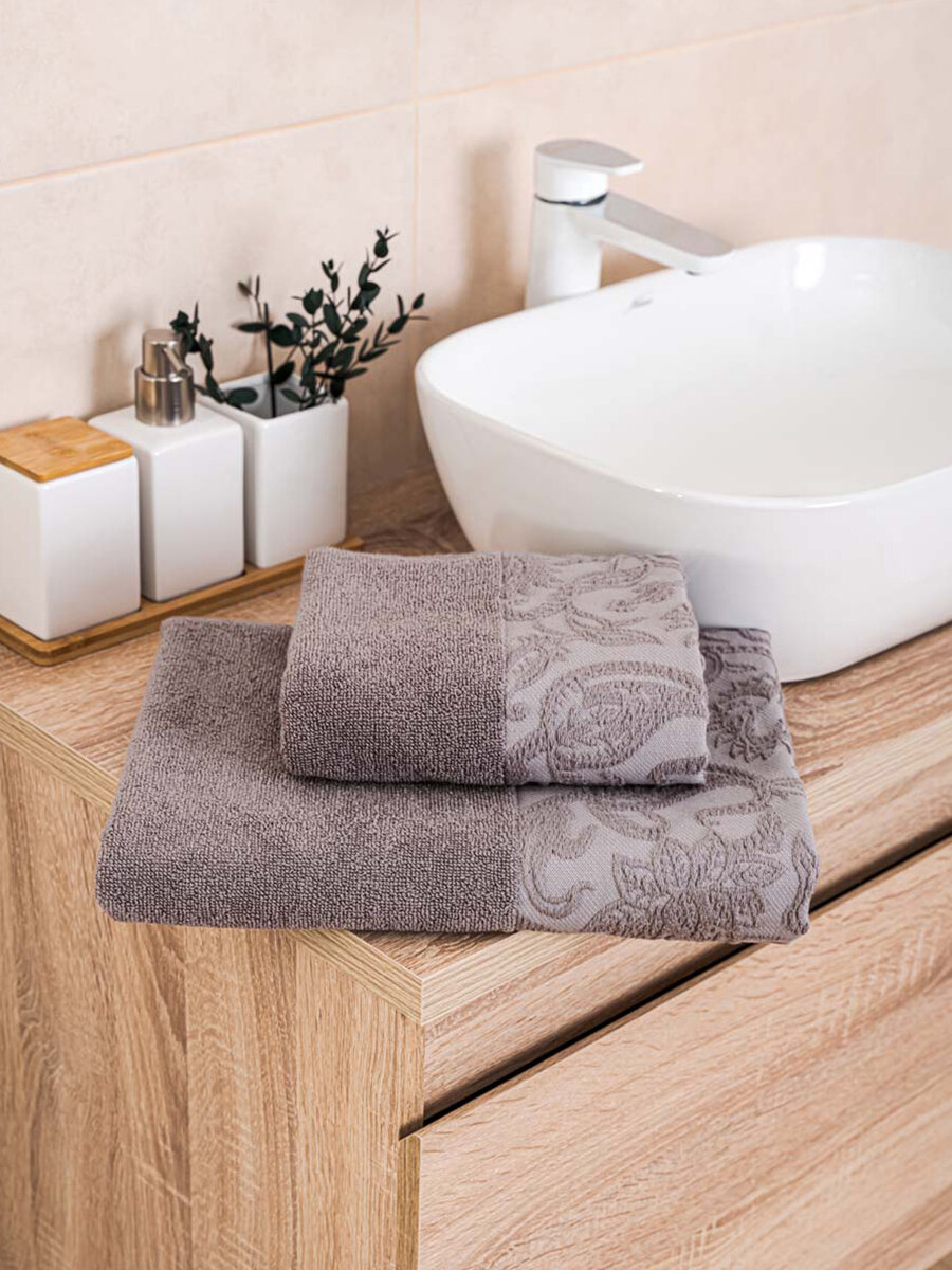 Отзывы на Набор махровых полотенец ECO-Life Paisley, 50х80, 70х130, Серый