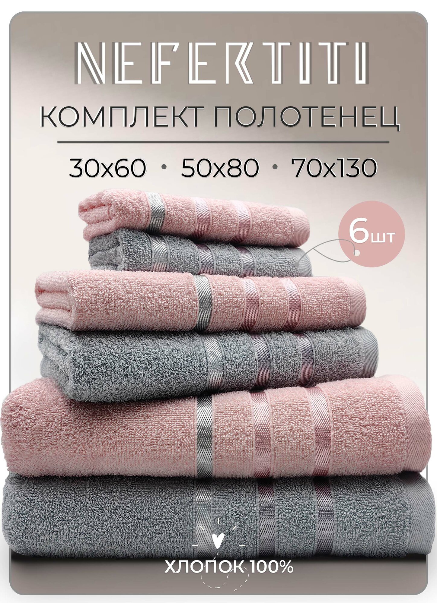 Отзывы на Полотенце махровое "Аквамарин" 6шт 30х60, 50х80, 70х130 серый/розовый