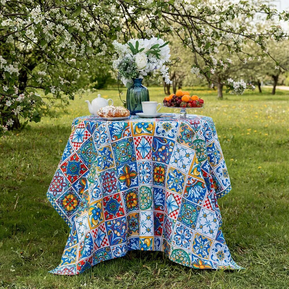 Скатерть рогожка 145х110 "Mia Cara" рис 30363-1 Азулежу 530 ₽