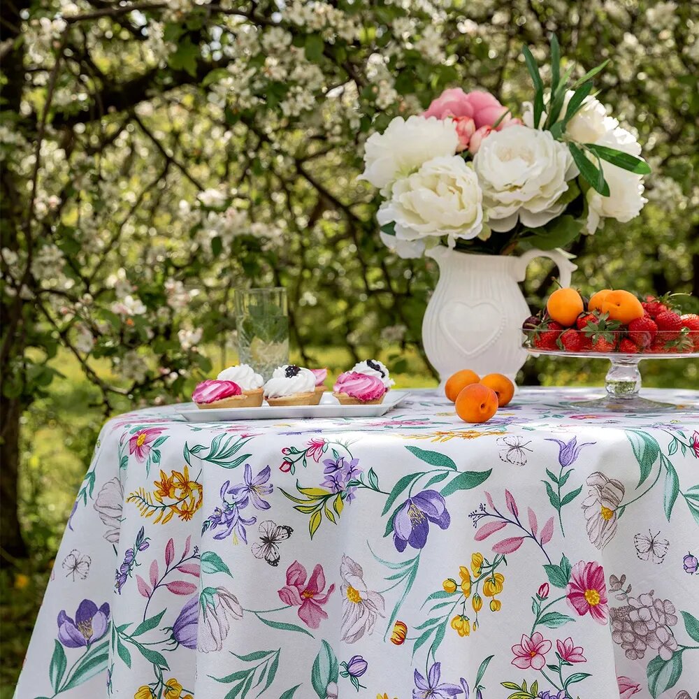 Скатерть на кухонный стол JoyArty JoyArty "Редкие цветы", круглая на резинке, диаметр 105-120 см