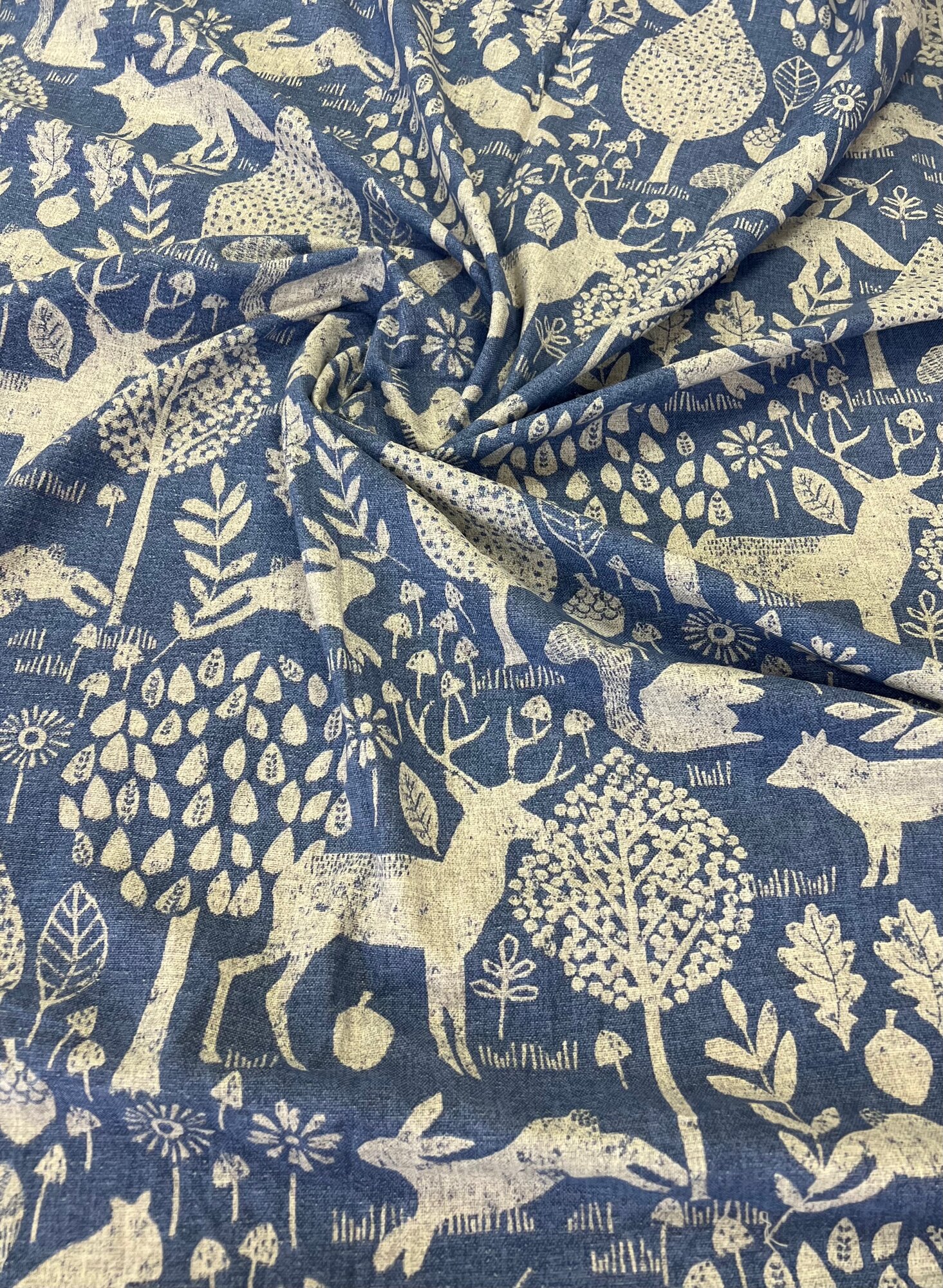 Ткань Рогожка набивная, цвет Джинс, ширина 150 см, на отрез информация:
