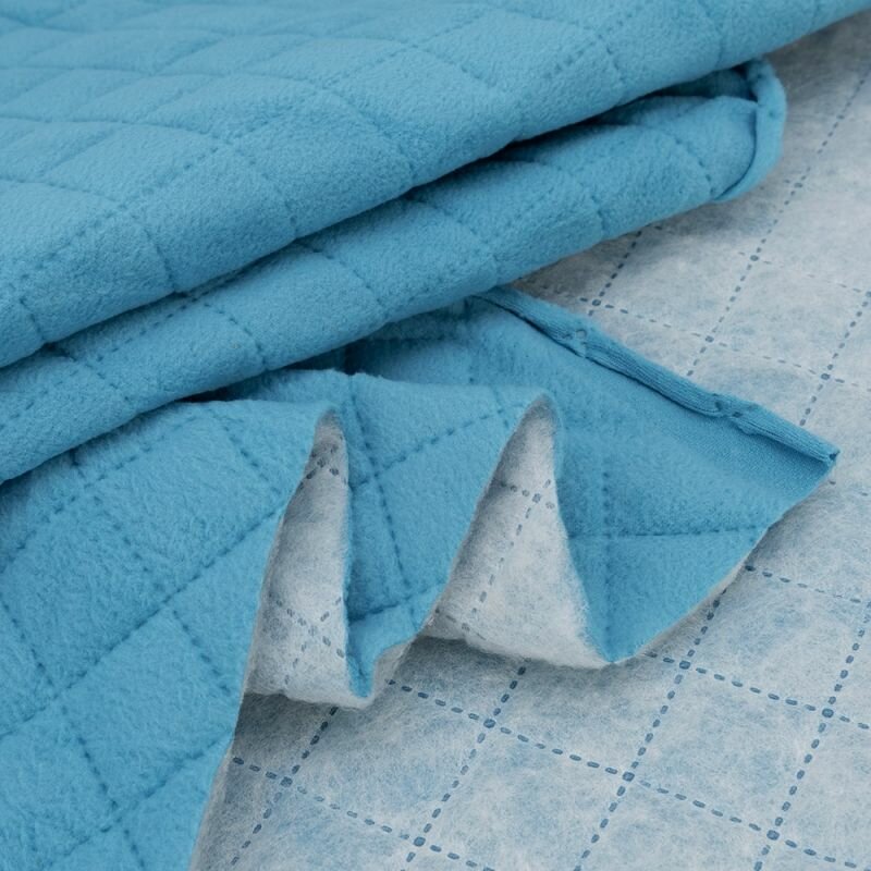 10 цен на Ткань для шитья, 1 Метр ткани, Флис на синтепоне стеганый 230 гр/м2, Отрез - 150х70 см, цвет голубой