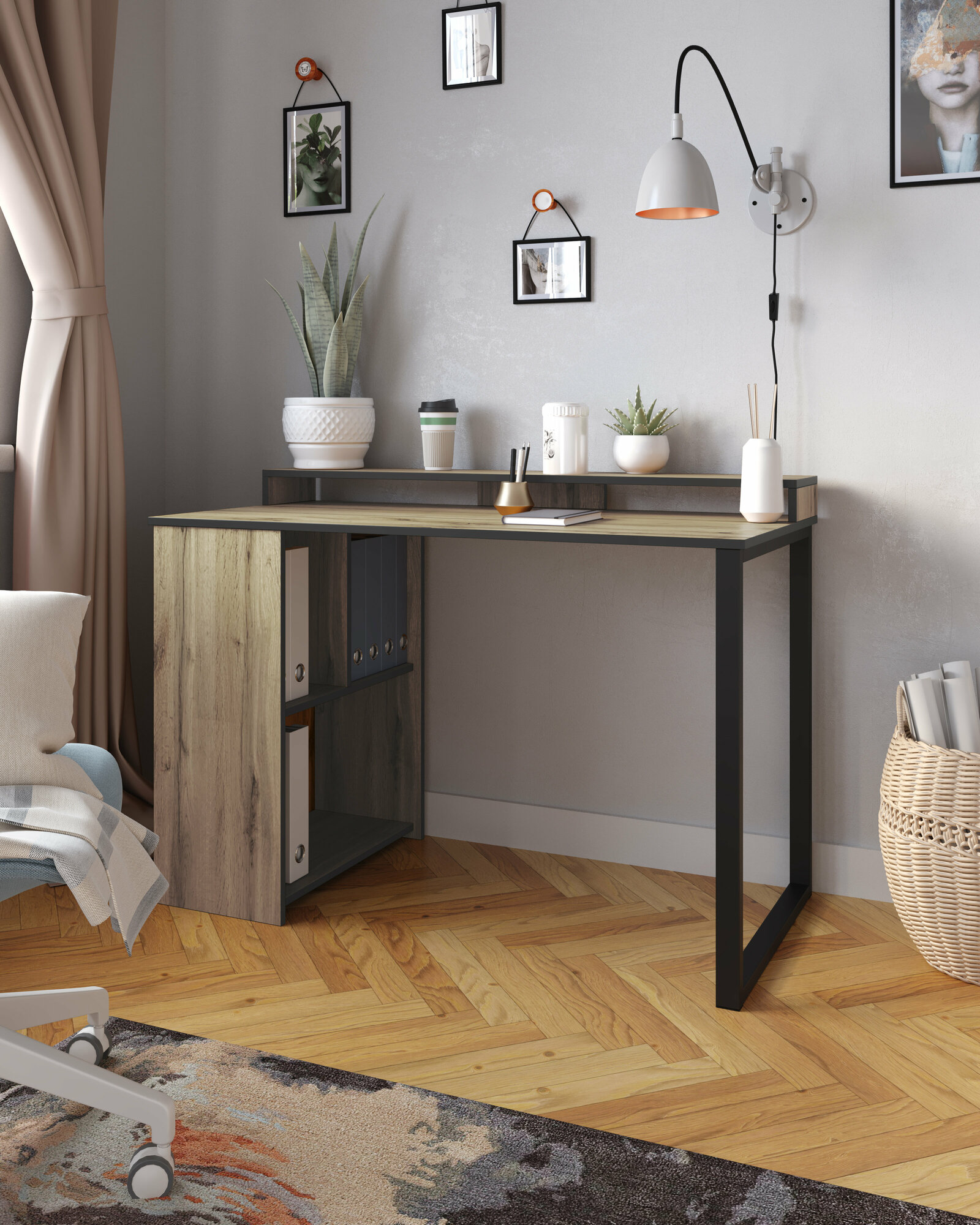 Стол письменный, компьютерный лофт INCUBE D004.140. NAT, дуб золотой, 140х60х75см, с органайзером, ЛДСП, металл