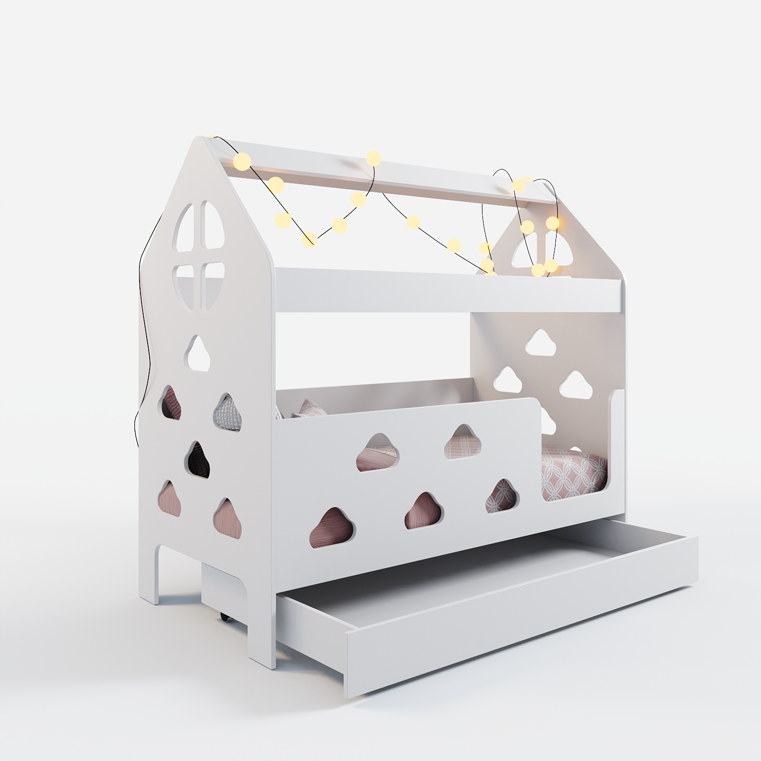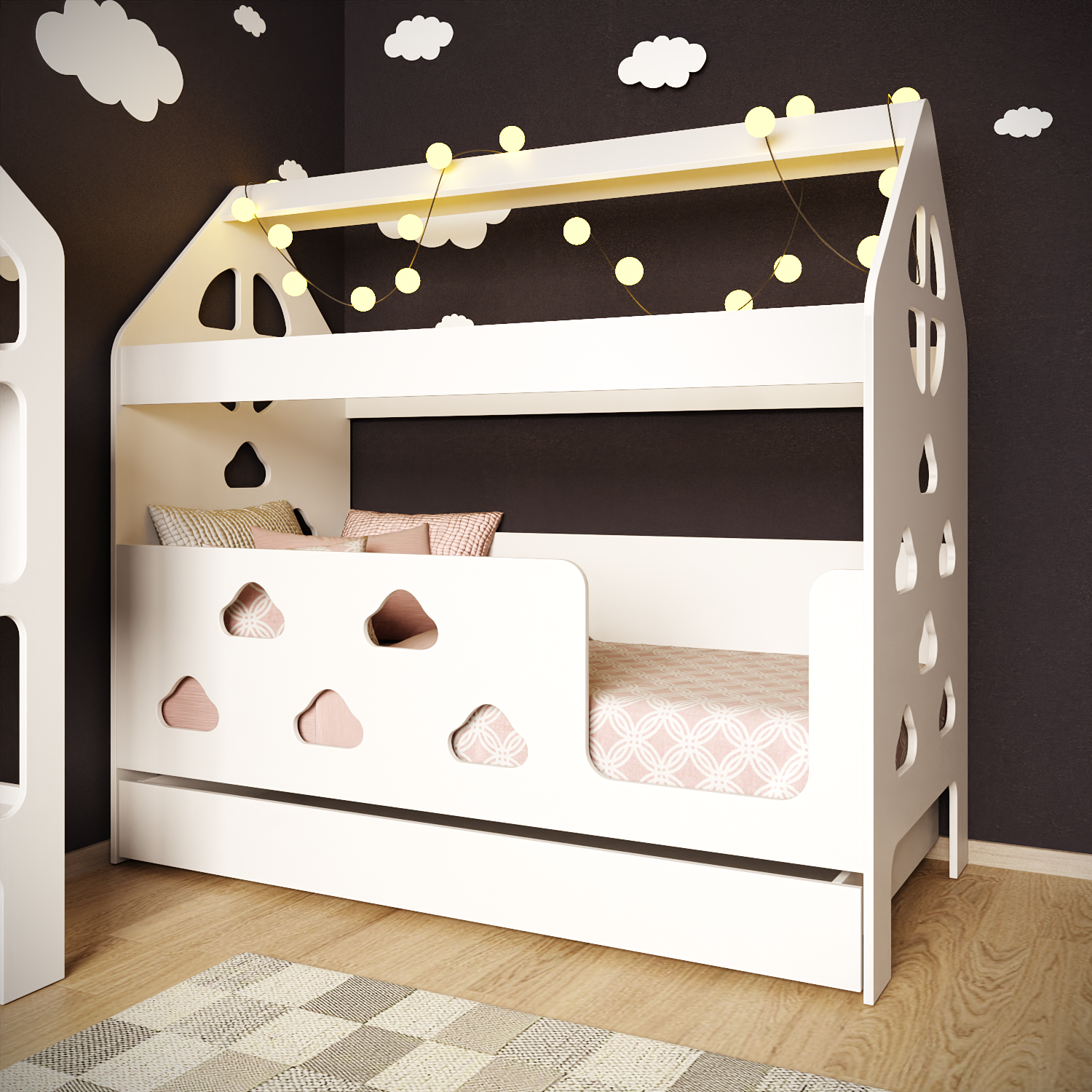 Кровать детская домик с ящиком (вход справа) "Облачка" информация: