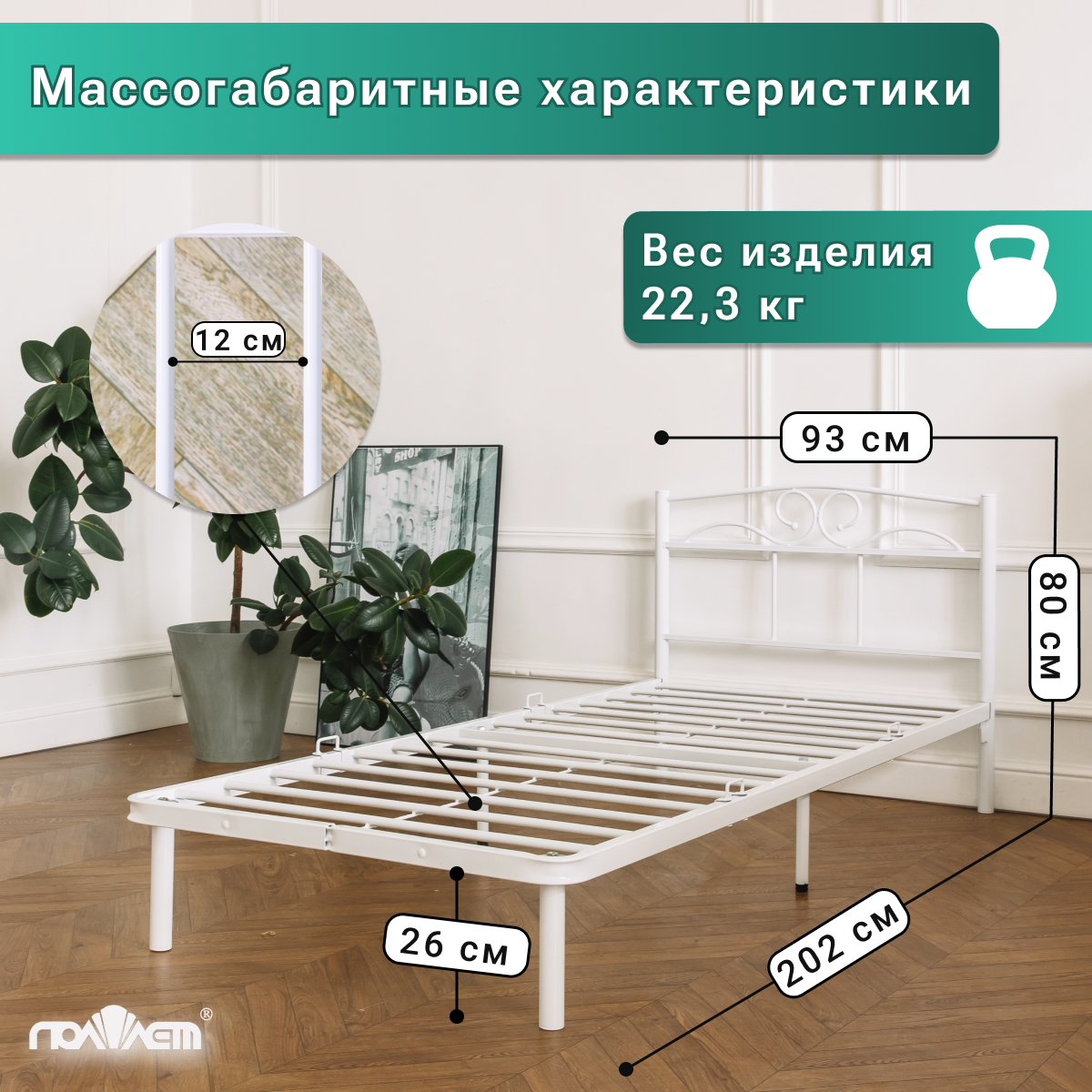 Кровать металлическая односпальная 90*200 см Марта Поллет белая информация:
