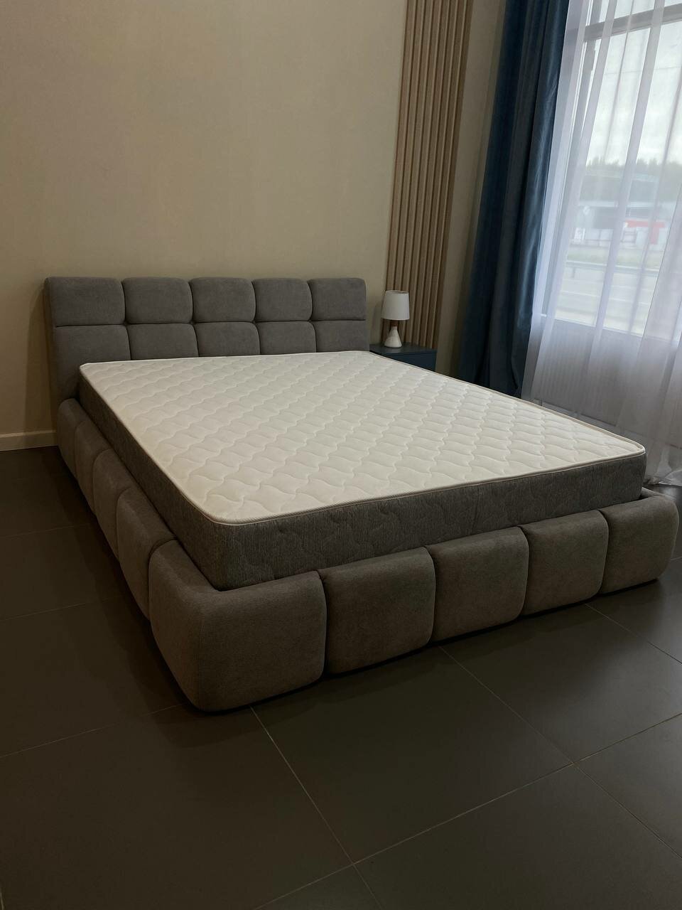 10 цен на VIERO Двуспальная кровать Анталия мягкое изголовье с размером спального места 200х200 с ортопедическим основанием и подъемным механизмом